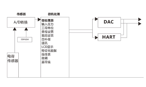 3151變送器由傳感器和電子線路板兩部分組成,傳感器部分包括:敏感元件、直接數(shù)字電容電路、溫度傳感器和特征化EEPROM等組成;電子線路板部分包括:微處理器、數(shù)/模信號(hào)轉(zhuǎn)換器、數(shù)字通信和存儲(chǔ)器EEPROM等幾部分組成,完成壓力信號(hào)到4-20mADC的轉(zhuǎn)換。