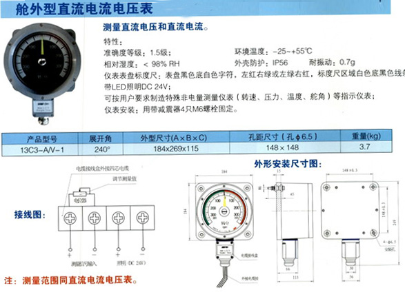 產品名稱:艙外形直流電流電壓表